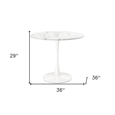 36" White Rounded Marble And Iron Pedestal Base Dining Table