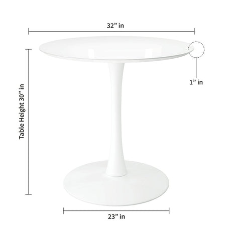 36" White Rounded Metal Pedestal Base Dining Table