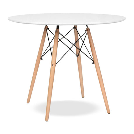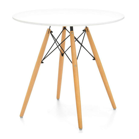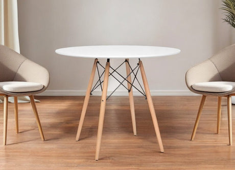 30" White And Natural Rounded Fiberglass And Solid Wood Dining Table