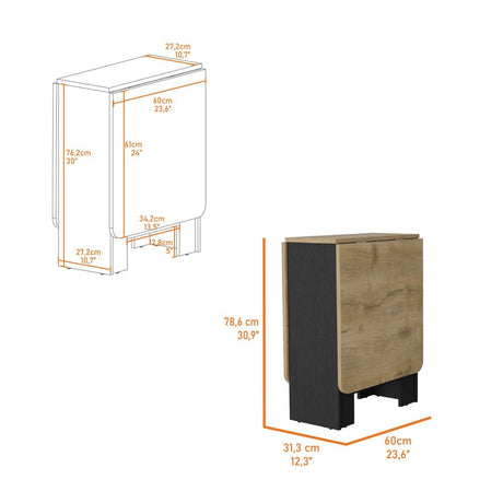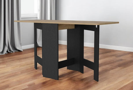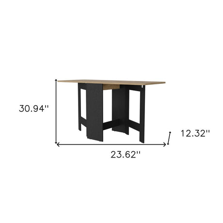 24" Wood Brown And Black Drop Leaf Trestle Base Dining Table