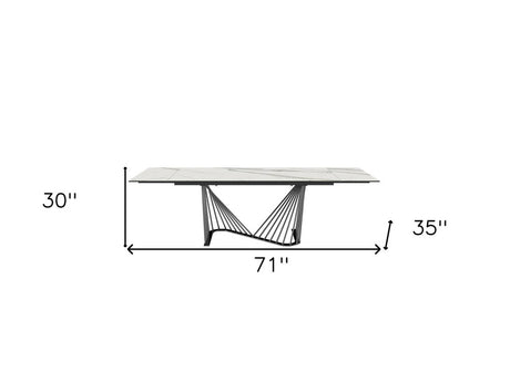 71" White and Black Stone and Iron Self-Storing Leaf Dining Table