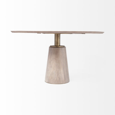 Regular price $1,853.25Unit price /Unavailable 54" Brown Rounded Solid Wood And Metal Pedestal Base Dining Table