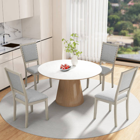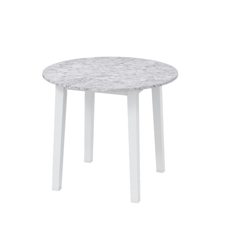 35 Inch Round Dining Table with Rubber Wood Legs and Marble-textured Veneer Tabletop-White