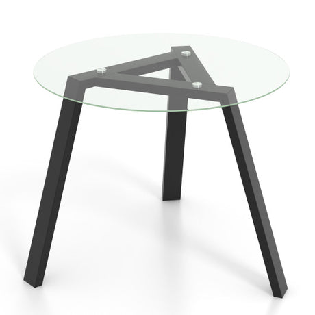 36 Inches Round Glass Dining Table for 4 with Rubber Wood Frame-Black