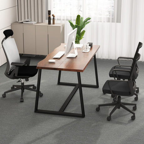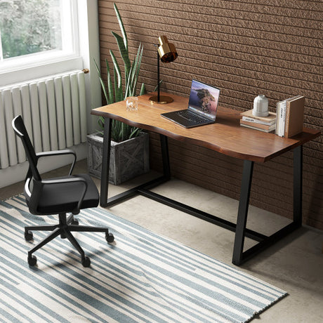 63" Large Dining Table with Wavy Edge and Heavy-duty Metal Frame-Coffee