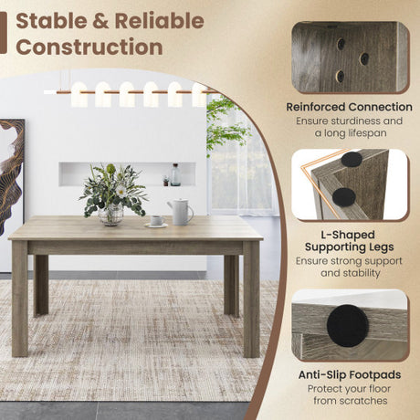 Large Dining Table with Heavy-duty Metal Frame and Anti-slip Foot Pads-Coffee