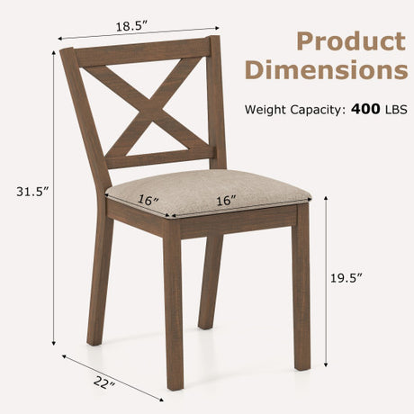 Wooden Dining Chair Set of 2 Farmhouse Kitchen Chair with Upholstered Seat-Brown