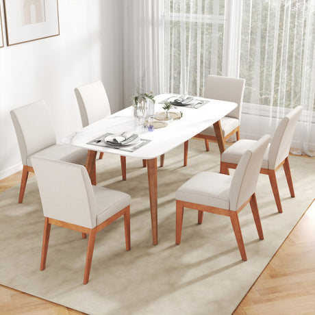 Wooden Dining Chair Set of 2 Modern Upholstered Kitchen Chair-Beige