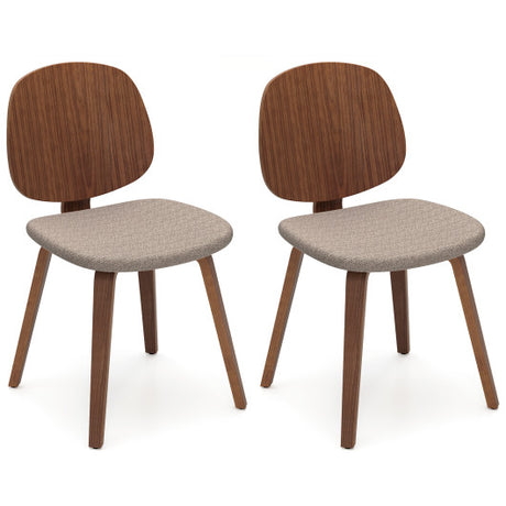 Wooden Dining Chair Set of 2 with Bentwood Frame and Padded Seat-Walnut