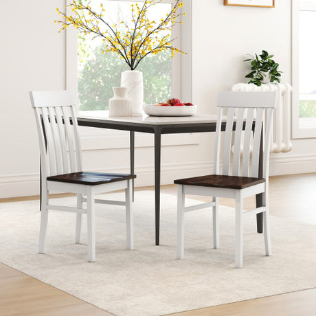 Set of 2 Kitchen Armless Dining Chairs with Slatted High Backrests-White