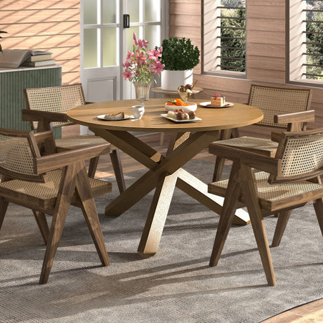 Wooden Dining Table with Round Tabletop and Curved Trestle Legs-Walnut