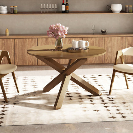 36 Inch Round Wood Dining Table with Intersecting Pedestal Base