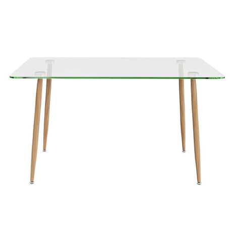 Modern Glass Rectangular Dining Table with Metal Legs-Natural