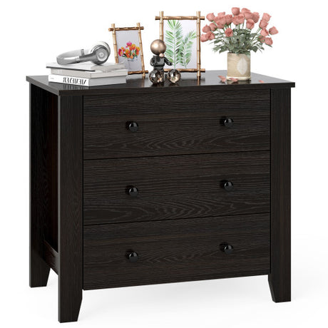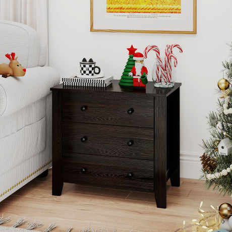 3 Drawer Dresser Chest of Drawers Bedside Table-Black Wood Grain
