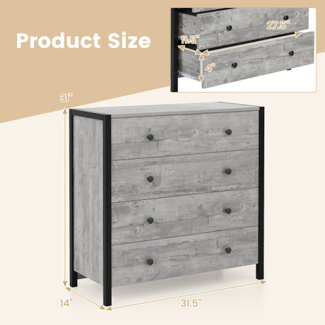 4-Drawer Dresser Modern Wooden Chest of Drawers for Bedroom Living Room-Gray