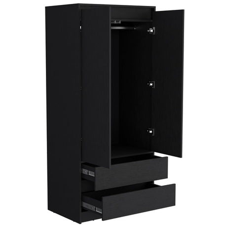 2-Drawer Stackable Horizontal Storage Cabinet Dresser Chest with Handles-Black