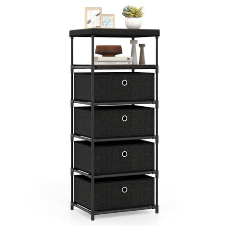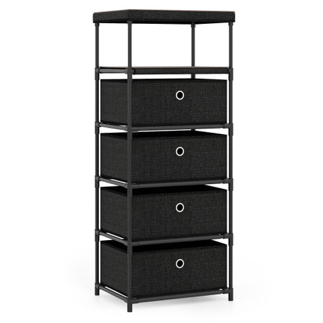 Narrow Dresser with 5 Drawers Slim Storage Tower with Metal Frame-Black