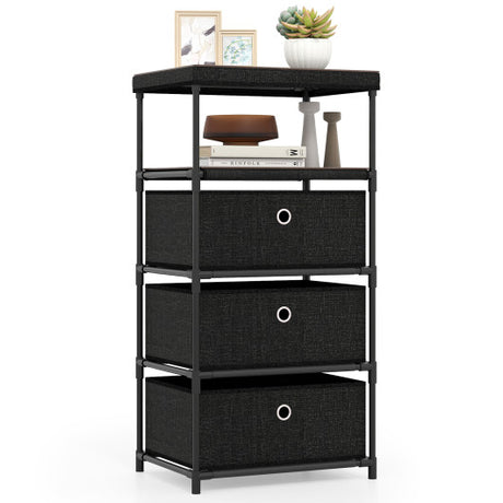 Dresser with 3/4 Drawers Fabric Storage Tower with Wood Top and Metal Frame-L