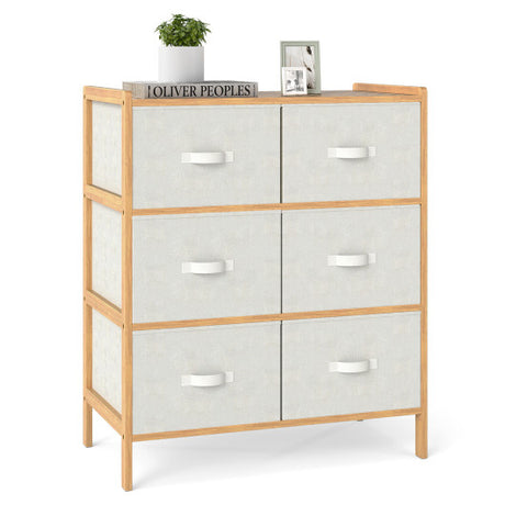 Fabric Dresser with 6 Drawers with 6 Folding Fabric Bins for Bedroom Living Room-Natural