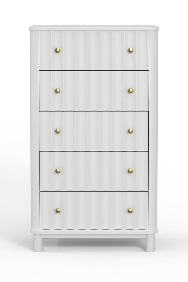 28" White Solid Wood Five Drawer Chest is backordered and will ship as soon as it is back in stock.