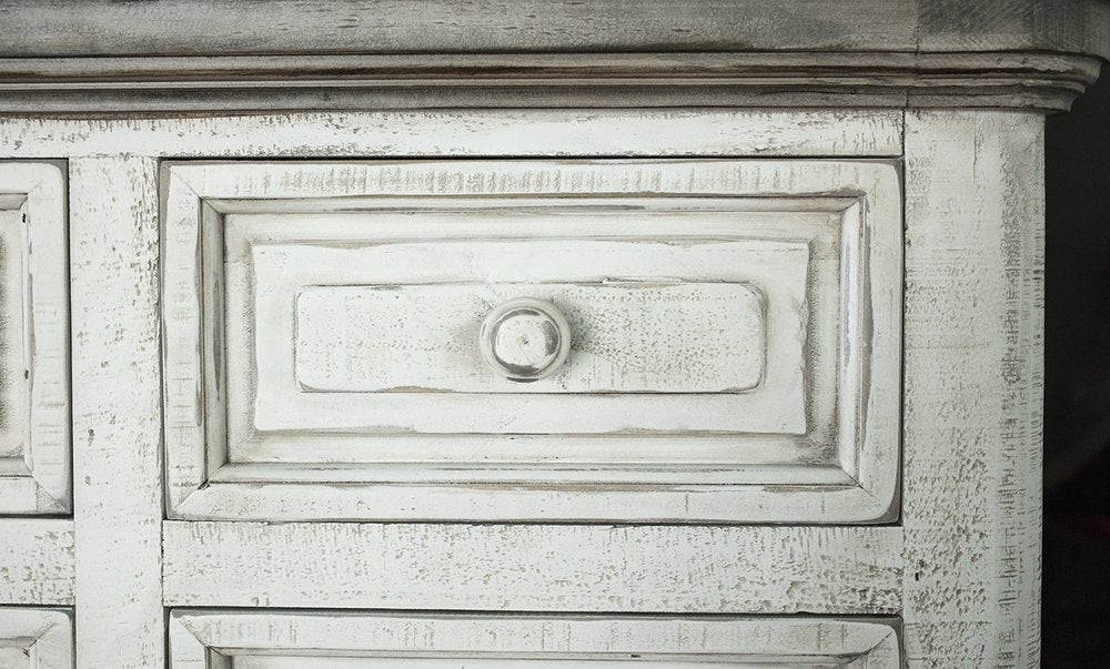 62" Gray and Ivory Solid Wood Nine Drawer Triple Dresser
