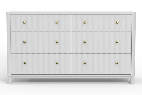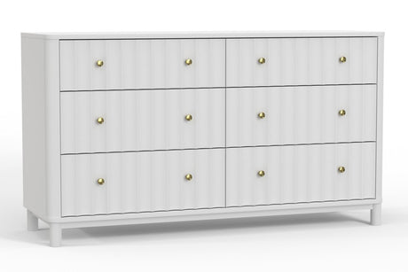 61" White Solid Wood Six Drawer Double Dresser
