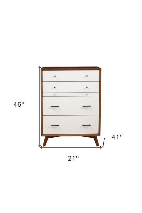 38" Brown and White Solid Wood Four Drawer Chest