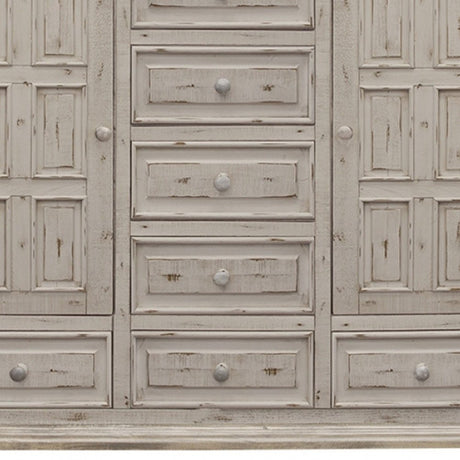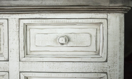 62" Antiqued White Solid Wood Six Drawer Triple Dresser