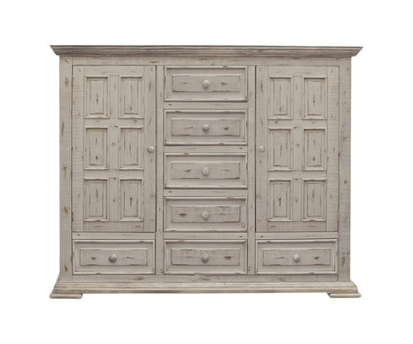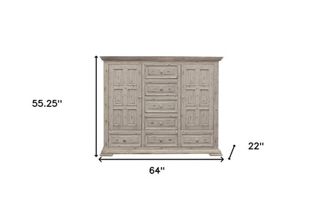 62" Gray and Ivory Solid Wood Nine Drawer Triple Dresser