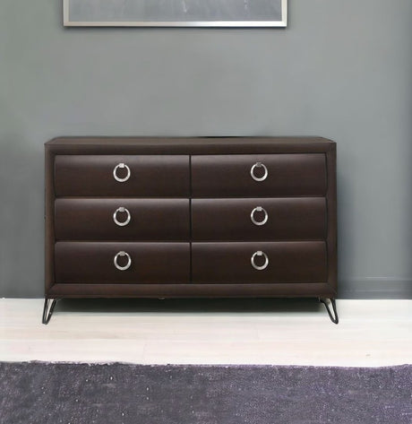 47" Walnut Black And Finish Manufactured Wood Six Drawer Double Dresser