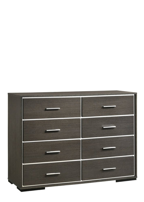 57" Gray Solid and Manufactured Wood Eight Drawer Double Dresser