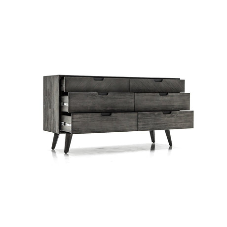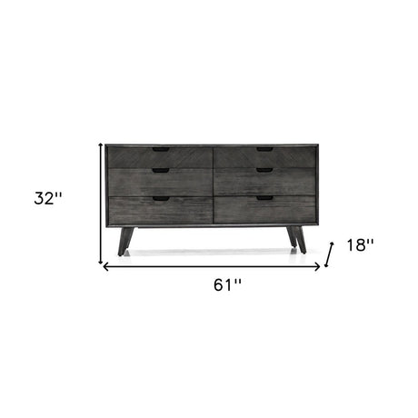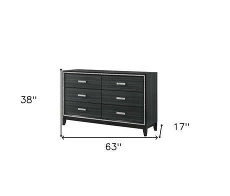 63" Dark Grey Solid And Manufactured Wood Six Drawer Dresser