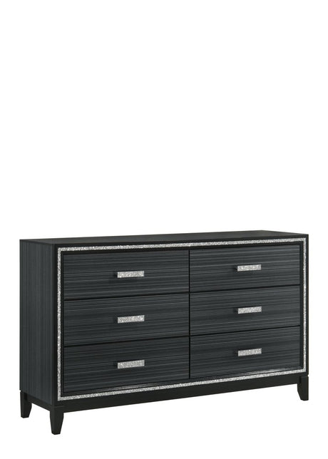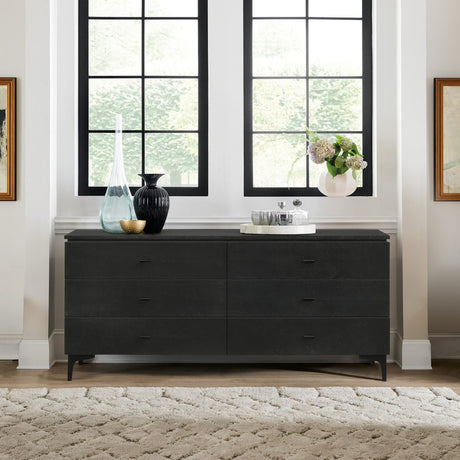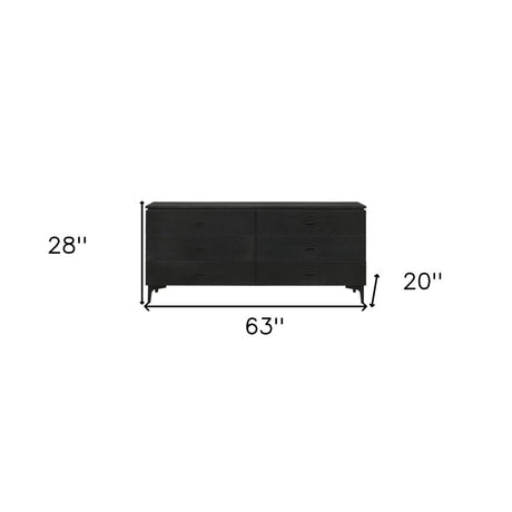 63" Black Solid and Manufactured Wood Six Drawer Double Dresser