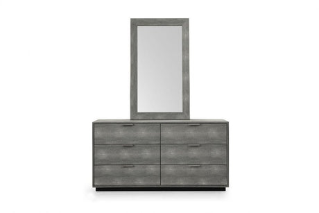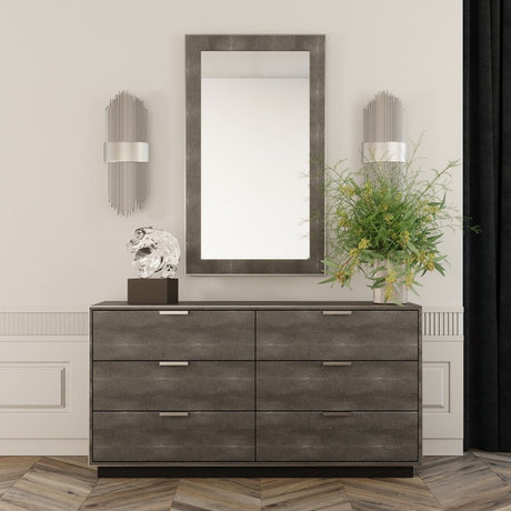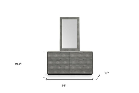 63" Grey Shagreen Faux Leather And Gold Six Drawer Double Dresser