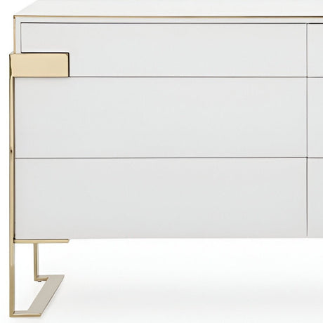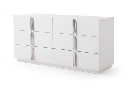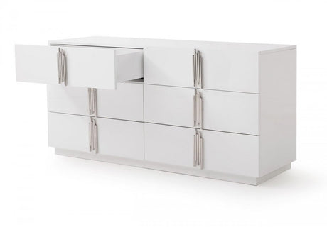 63" White High Gloss Manufactured Wood Eight Drawer Double Dresser