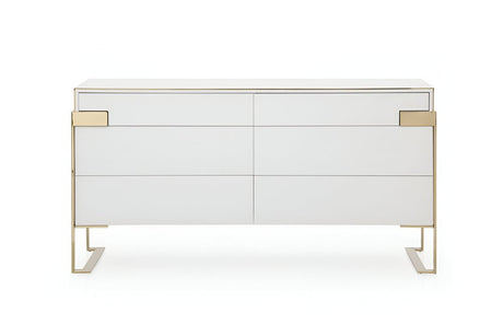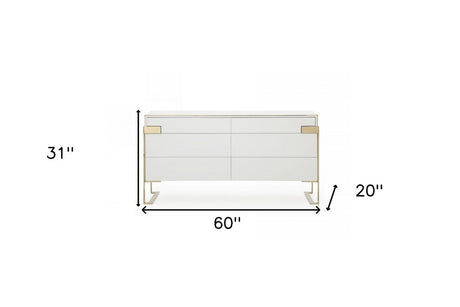 60" Gold and White Solid and Manufactured Wood Six Drawer Double Dresser