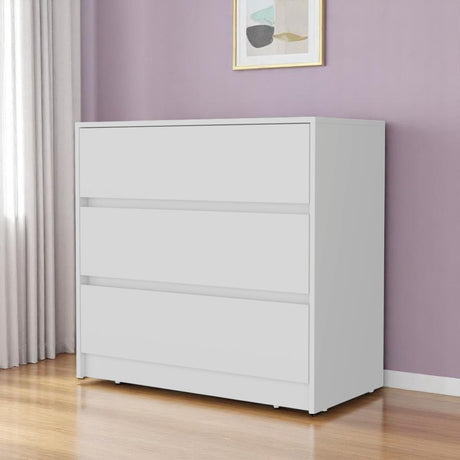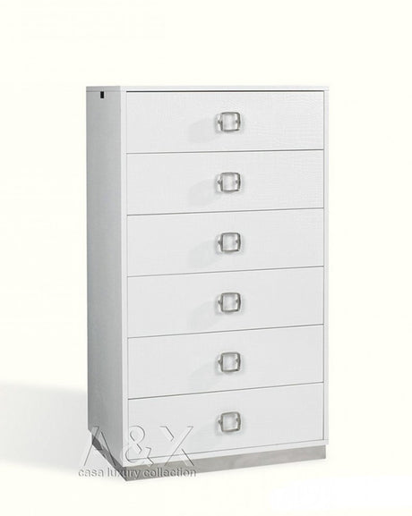 32" White Manufactured Wood + Solid Wood Stainless Steel Six Drawer Chest