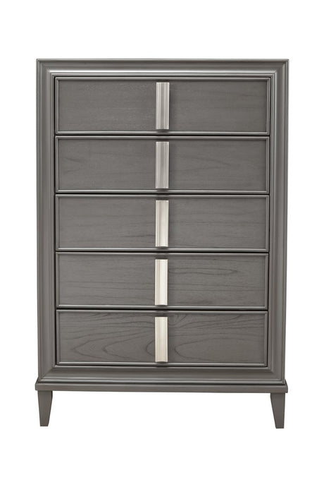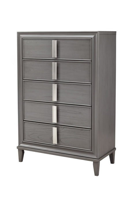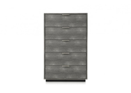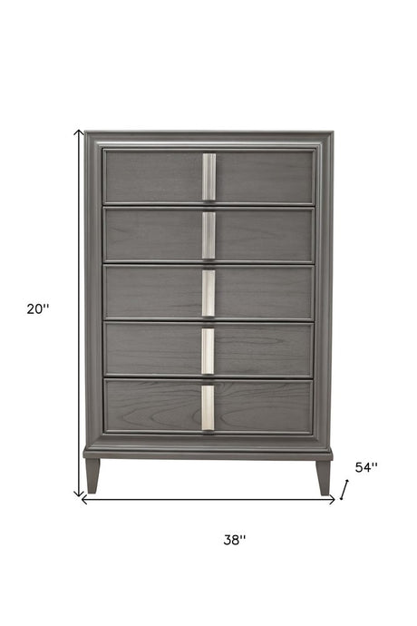 30" Grey Manufactured Wood + Solid Wood And Stainless Steel Five Drawer Chest