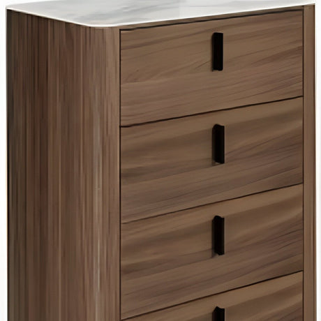 55" Walnut Marble Solid And Manufactured Wood Three Drawer Dresser