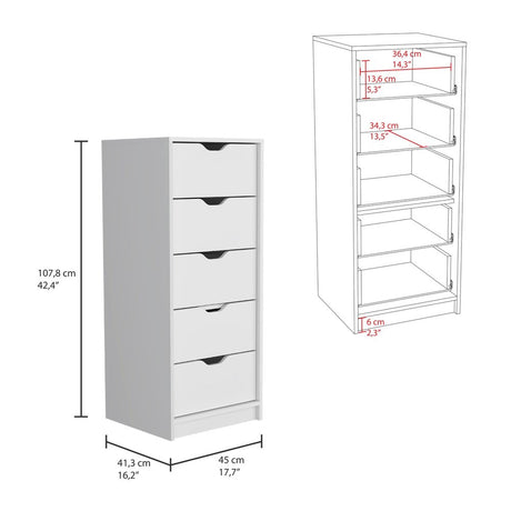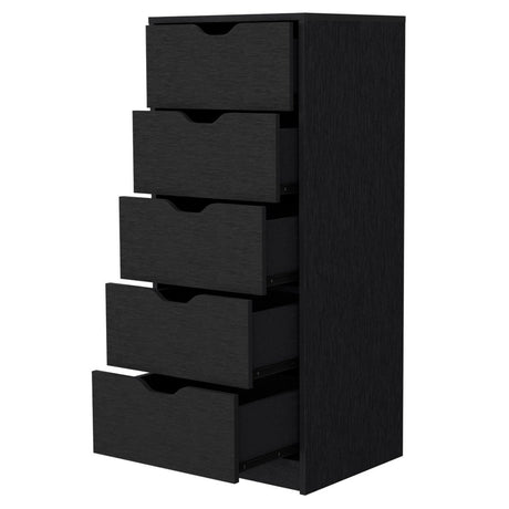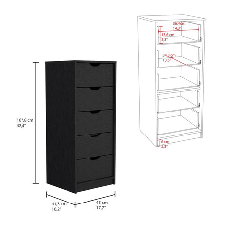 18" Black Manufactured Wood Five Drawer Narrow Dresser