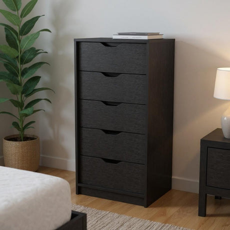 18" Black Charcoal Manufactured Wood Five Drawer Tall and Narrow Dresser