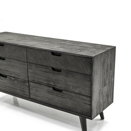 61" Gray Solid and Manufactured Wood Six Drawer Double Dresser