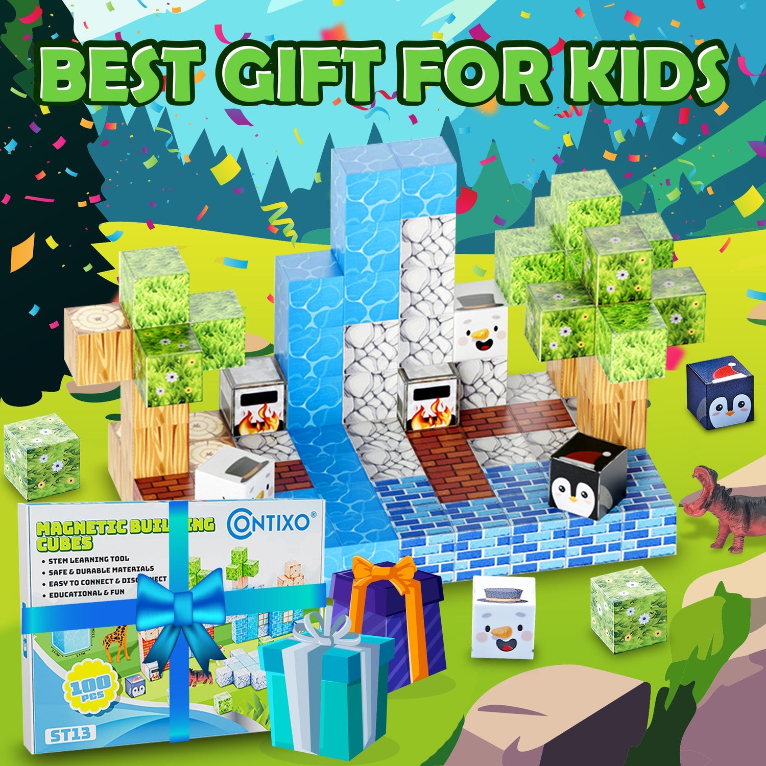 Contixo ST13 Magnetic Blocks, 100 PCS Magnetic Building Cube Game, Sensory Toys for Boys & Girls, STEM Stacking Toy Gifts for Age 3-12 by Contixo