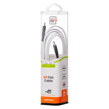 Ventev Chargesync Flat USB A to USB C Cable 6ft by Ventev
