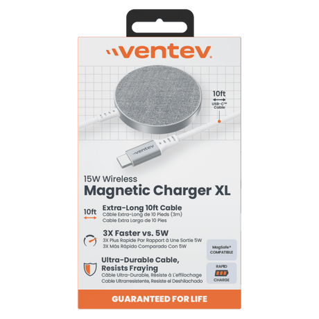 In stockVentev 10ft Alloy 15W Wireless Magnetic Charger by Ventev