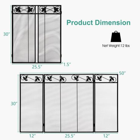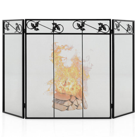 3-Panel Freestanding Fireplace Screen Folded Fire Doors