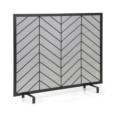 38 x 31 Inch Single Panel Fireplace Screen-Black