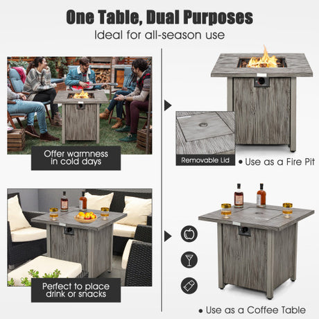 28 Inch 50000 BTU Patio Square Propane Fire Pit with PVC Cover-Gray