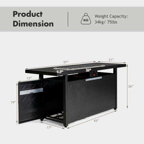 57 Inch 50 000 BTU Rectangular Propane Outdoor Fire Pit Table-Black