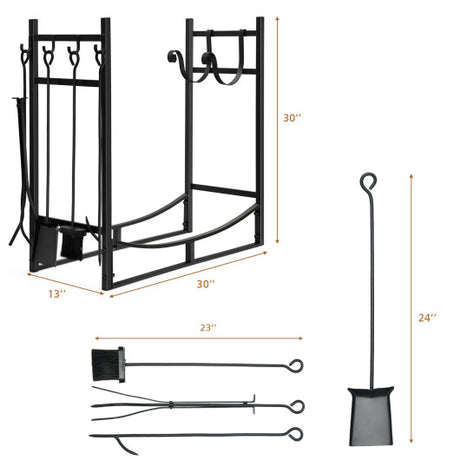 30 Inch Firewood Rack with 4 Tool Set Kindling Holders for Indoor and Outdoor